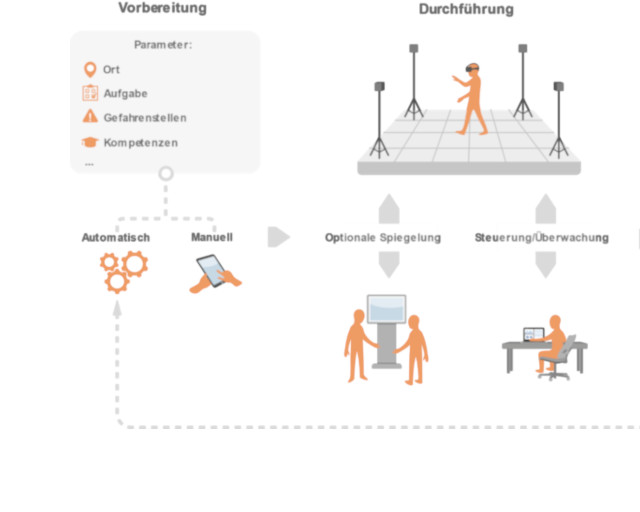 Aufbauend auf dem Ist-Zustand der Führungsausbildung erfolgt eine Bedarfsermittlung an ein VR-Ausbildungssystem Mithilfe von Expert*inneninterviews wird ein einsatztaktisches Gesamt-konzept erarbeitet, welches didaktisch aufbereitete Lern-Lehr-Konzepte umfasst. Dieses bildet den Grundstein für die Gesamtplattform und eine Simulationsumgebung mit automatisierten Szenarien. Gemeinsam mit der Zielgruppe wird die automatisierte Auswertung und Handlungs-erkennung getestet und verbessert. Dabei stehen die Erreichung und Messung des Lernerfolgs insbesondere latenter Variablen im Vordergrund. In diesem Prozess erfolgt immer wieder eine Validierung und Evaluation anhand von Workshops, Fokusgruppen, teilnehmender Beobach-tung und Nutzendenevaluationen. Insgesamt wird ein Fokus auf Anwendungsfreundlichkeit der Plattform gelegt.
